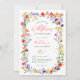 Adicione um toque de elegância boêmica ao seu milestone bebê, primeiro aniversário com o nosso Convite para primeiros aniversarios de flores selvagens Coloridas e Modernas do Chic Boho Bright. Apresentando flores botânicas de matizes cor-de-rosa, vermelha, verde e roxa inspiradas em flores silvestres e jardins rústicos de aquarelas com um verde sutil e uma tipografia moderna de matizes.