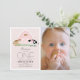 O 1rua/primeiro convite fotográfico de aniversário desta menina bonita e moderna apresenta um cavalo e uma vaca com um celeiro cor-de-rosa sobre um fundo cor-de-rosa escamoteado por uma fronteira branca. O verso apresenta um fundo branco com padrões de vacas negras. Personalize para suas necessidades. Você pode encontrar produtos correspondentes na minha loja.