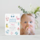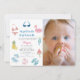 O convite para fotos de 1rua/primeiro aniversário desta menina bonita apresenta um par de óculos de sol, maiô, bebida tropical, cadeira de praia, guarda-chuva, abacaxi, picolé de melancia, bola de praia e tubo flamingo. O verso apresenta um fundo branco com listras azuis turquesas. Personalize-o para as suas necessidades. Perfeito para festas de aniversário, blocos, coquetéis, festas de verão, festas de formatura e festas de limpeza doméstica. Você pode encontrar mais produtos correspondentes na minha loja.