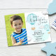 Boys Hot Air Balloon Photo primeiro aniversario Invitation apresenta balões de ar quente e nuvens flutuantes com tipo de caligrafia cardíaca de script.