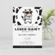 convite de festas de primeiro aniversario branco e preto legal com impressão de vaca vestindo óculos de sol. Personalize-o com os detalhes do evento.