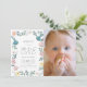 Este cartão de convite para fotos de primeiro aniversario de uma garota bonita apresenta um fundo branco cercado por flores e verdes. O verso apresenta um fundo branco com padrões de verificação pintados à mão em rosa. Personalize-o para as suas necessidades. Você pode encontrar mais produtos para urso polar na minha loja.