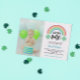 Sorte de um convite de aniversário com quatro capas verdes e um arco-íris brilhante em cores bonito. Dia de São Patrício o primeiro convite de aniversário em azul com um arco-íris bonito e quatro capas de folha. Azul, um convite de aniversário com quatro capas de folha e o nome do seu filho em azul. Azul, sortudo, um convite de aniversário com quatro capas de folhas. Sorte um convite de aniversário personalizado com uma foto do seu filho.