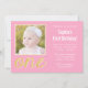 Um convite de aniversário doce e feminino. Mostrado em brilho de ouro e cor-de-rosa. Personalize facilmente com uma foto da aniversariante. primeiros aniversarios modernos e quentes convidam isso para impressionar. Designs são gráficos impressos em formato plano - NÃO É VERDADEIRO GLITTER.