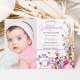 Nossa flor silvestre está girando 1! Imagem elegante de flores primavera de verão modernas, com bonito escritura de flores e pincéis selvagens, primeiro convite para fotografia de festa de aniversário com uma tipografia caligráfica moderna com flores vermelhas, roxas, rosa, terracotta.