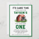 É hora do jogo! Celebre o seu pequeno ano novato do MVP com este convite de primeiro aniversario do tema de futebol do "Primeiro Ano em Baixo". Com gráficos de futebol divertidos, texto ousado e muito charme, este convite é perfeito para o grande dia do seu bebê. Personalize com os detalhes do seu partido e prepare-se para dar o pontapé mais bonito!