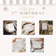 Celebre o seu primeiro ano com este convite de aniversário de Goose, Bobo cômico, com florais de aquarelas, um encantador cesto de ovos, balões pastéis e ganso ao estilo de um livro de histórias em um chapéu de sol. Os tons neutros gentis e a fronteira botânica criam uma sensação quente e elegante — perfeita para uma reunião de aniversário inspirada na natureza ou rústica. Projetado com amor para pais que adoram estética de cottagecore única