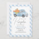 Esta bela vintagem, e o rustico convite de 1rua/primeiro aniversário do "pequeno abóbora", de um menino, apresenta um fundo branco com cheques de gingham azul e um caminhão azul cheio de abóboras e flores. O verso apresenta um fundo branco com padrões de bolinhas de cinzas leves. Personalize para suas necessidades. Você pode encontrar mais produtos correspondentes na minha loja.