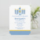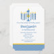 Design personalizado bonito para Hanukkah do bebê o ø e aniversário com nove velas azuis que olha como um menorah. Número grande 1 com estrela de David e texto customizável. Original de PinkInkArt!