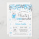 Convite De primeiro aniversario De Rapaz Polar De Onederland. Floco de neve azul e Cinza. Convite de aniversário. Feriado de inverno. Fundo Branco.