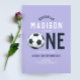 O convite para o primeiro aniversario desta criança moderna apresenta um design esportivo roxo, com um fazer de bola de futebol giro (futebol), o 'ONE', e um padrão correspondente no verso. O convite pode ser personalizado com o nome de suas garotas e outros detalhes necessários para sua festa.