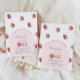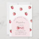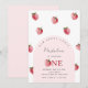 Convite para o primeiro aniversário de morango. Itens correspondentes disponíveis.