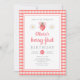 Primeiro aniversario de Morango Berry Primeiro Convite de Aniversário. Celebre seu primeiro aniversário do Sweet One com nosso querido primeiro aniversario de Morango Berry Primeiro Convite de Aniversário! Esta doce design mostra um morango giro vestindo um arco rosa coquetel num charmoso fundo de gingham vermelho e branco. Perfeito para a primeira festa de aniversário da sua menina. Peça agora e prepare-se para espalhar a doçura com este convite encantador e único! Acessórios correspondentes disponíveis.