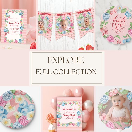 Convites Primeiro aniversario de morango Berry Sweet Pink A