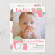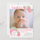 Foto de aniversário de Berry Sweet Strawberry para primeiro aniversario de bebê ou qualquer idade. Morangos, doces e festivos, a aquarelas, em tons de rosa e verde, com texto branco rosa.