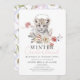Este belo convite de inverno/primeiro aniversario feito pela menina de inverno apresenta um bebê leopardo/leopardo-da-neve com floral de inverno e bagas em aquarela. O verso apresenta um fundo branco com padrões florais. Personalize-o para as suas necessidades. Você pode encontrar mais produtos correspondentes na minha loja.
