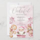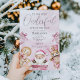 uma feliz comemoração de férias onde a magia do Natal encontra a doçura de um primeiro aniversário. A design de aquarela apresenta Papais noeis alegres em uma roupa cor-de-rosa macia, topicamente pregada numa chaminé rosa, combinando imagens de Natal tradicionais com uma reviravolta caprichosa e moderna. O fundo nevado, as estrelas delicadas e os tons suaves do pastel aumentam a sensação de calor, maravilha e encanto. O que torna esta design especial é a sua capacidade de captar tanto o entusiasmo festivo da estação como a ternura do marco infantil, criando um convite que se sente mágico e encantador.