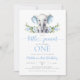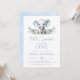 Convite de primeiro aniversario de elefante floral azul para um garoto de amendoim.
