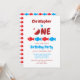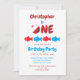 Pescar presentes de primeiro aniversário com peixes vermelhos e azuis e bobeira de pescador