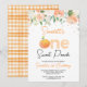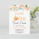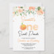 Peach Colorida Floral Sweet Peach Convite para o primeiro aniversario Peach Sweet Pessegueira Sweet O primeiro convite de aniversário para uma menina com um adorável arranjo floral no topo e alguns pontos coloridos de cobre. Este pêssego tematizado de 1º aniversário também apresenta um grande pêssego e letras aquáticas que soletram o número um.