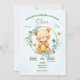 Celebre seu aniversário com este adorável convite! Ele tem um doce urso de mel segurando um pote de mel, cercado por verde. É perfeito para a festa de aniversário de um menino.