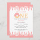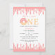 Este design apresenta um com rosquinha cor-de-rosa junto com fundo pálido de gotejamento de creme doce. Comemore seu aniversário doce personalizando este convite de aniversário de rosquinha rosa. Perfeito para o primeiro convite de aniversário.