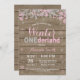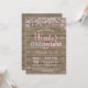 Rustic Winter Onederland Pink e Silver Girl primeiro aniversario Invitation. Primeira Festa de aniversário da rua. Floco de neve brilhante e prateado. Convite de aniversário. Feriado de inverno. 1rua Primeiro Aniversário. Fundo Rustic Wood. Campo de Vintage Retro Barn Para mais personalização, clique no botão "Personalizar" e use a nossa ferramenta de design para modificar este modelo