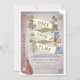 Este belo convite para primeiro aniversario de uma garota de "uma vez por vez" apresenta uma cinza com animais bem vestidos, como gato, raposa, pato, guaxinim, rato e cão. O verso apresenta um fundo arrojado com padrões florais/rosa. Personalize-o para as suas necessidades.