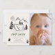 O convite fotográfico de 1rua/primeiro aniversário deste rapaz para acampar ilustrações desenhadas à mão da tenda, montanhas, árvores e sol. O verso apresenta um fundo verde khaki com padrões de árvores. Personalize-o para as suas necessidades. Você pode encontrar produtos correspondentes na minha loja.