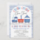 Convites Primeiro aniversario de trem Red Blue Gingham Chug