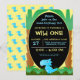 Convites Primeiro aniversario de Um Dinossauro Azul Selvage