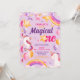Convite para primeiro aniversario Mágico de Um Arco-Íris Cor-de-Rosa Unicórnio. Cor pastel bonita de unicórnios e o primeiro convite de aniversário do bebê arco-íris.