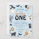 Comemore com estes convites de primeiro aniversario de Dia das Bruxas "Spooky ONE", divertidos e modernos. Este primeiro aniversario moderno apresenta fantasmas pintados manualmente de aquarelas, gatos pretos, abóboras, morcegos e teias de aranha. Padrão de Halloween no fundo. Você pode personalizar o texto, o estilo da fonte, a cor e o tamanho em frente e atrás do convite. Por favor, foi livre de me contactar para encontrar itens correspondentes.