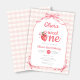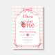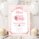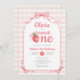 Doce Um Convite Para primeiro aniversario De Garota De Morango. Celebre o seu primeiro aniversário do Sweet One com o nosso querido Convite para primeiro aniversario da Strawberry Girl! Esta doce design mostra um morango giro vestindo um arco rosa coquetel num charmoso fundo de gingham vermelho e branco. Perfeito para a primeira festa de aniversário da sua menina. Peça agora e prepare-se para espalhar a doçura com este convite encantador e único! Acessórios correspondentes disponíveis.