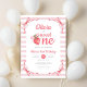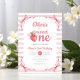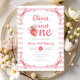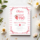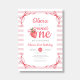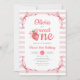Doce Um Convite Para primeiro aniversario De Garota De Morango. Celebre o seu primeiro aniversário do Sweet One com o nosso querido Convite para primeiro aniversario da Strawberry Girl! Este doce design mostra um morango giro vestindo um arco cor-de-rosa coquetel num charmoso fundo vermelho-libreado. Perfeito para a primeira festa de aniversário da sua menina. Peça agora e prepare-se para espalhar a doçura com este convite encantador e único! Acessórios correspondentes disponíveis.