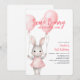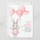Comemore o primeiro aniversário do seu filho com nosso belo convite para coelhinhos cor-de-rosa. O design apresenta um belo coelho aquoso e coelho penteado e balões cor-de-rosa esmagados, fazer-o na moda e charmoso. Use as ferramentas de design para personalizar o texto. Também disponível como download digital.