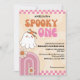 Celebre seu primeiro aniversário com este adorável convite de fantasma rosa, perfeito para uma festa de aniversário de Halloween! Apresentando um fantasma sorridente, tons cor-de-rosa pastel e roxos, e elementos estranhos divertidos como estrelas e morcegos, esta design é ideal para a primeira festa de aniversário de uma menina em outubro. Este convite encantador e brincalhão mistura-se assustador e doce — ideal para aqueles que amam o Halloween mas querem uma estética feminina e suave. Personalize-se facilmente com os detalhes do seu evento e defina o tom para uma bela celebração! Excelente para festas de aniversário de outono, festas de fantasia ou festas de bebês de outubro.