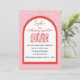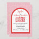 Celebre o seu primeiro aniversário com este doce convite! Projetado com uma encantadora forma arquejada, fundo rosa macio e adorável inscrição com o tema do morango, este convite é perfeito para uma celebração doce e brincalhona. As matizes vibrantes, vermelhas e embaçadas, aliadas a fontes brancas e rabiscos frutas, criam uma vibração divertida e festiva. Totalmente personalizável com o nome do seu filho, os detalhes da festa e as informações de RSVP. Ideal para um momento marcante de uma menina amante de morango!
