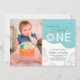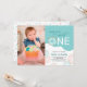 Este convite de festas de aniversário fofo foi projetado para uma festa de primeiro aniversario de menina. O texto moderno diz "(Name) is a Sweet ONE", acentuado com uma rosquinha de fosco e borrifadas, e oferece uma foto vertical para uma foto da aniversariante.