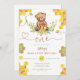 O design de Convite para primeiro aniversario de Urso de Mel é absolutamente adorável e captura a doçura e inocência da primeira comemoração de aniversário de um urso bebê. A peça central da design é um encantador bebê urso sentado e segurando um boião de mel, o que adiciona um toque encantador. Na cabeça do urso está uma coroa feita de lindas flores amarelas do campo, dando ao convite uma sensação caprichosa e natural. A presença de abelhas zunindo por aí adiciona um senso de vivacidade e brincadeira ao design geral. Além disso, os pentes de mel que decoram o convite fornecem um elemento encantador e coeso, ligando tudo. Esta design é verdadeiramente animadora e captura a essência de uma celebração alegre e doce. A maioria das letras é editável - clique no botão "Personalizar mais" para editar. Itens correspondentes na nossa loja PrettyDesignHouse. Obrigado!