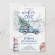 Inverno de um primeiro aniversario de Derland. Este encantador convite é perfeito para uma comemoração de primeiro aniversário com tema de inverno para seu garotinho. Apresenta gráficos adoráveis de caminhões azuis, neve, floresta e árvores florestais, criando uma atmosfera festiva e espiritual. Personalize facilmente o design com seu próprio texto Parte de uma coleção. Itens correspondentes estão disponíveis.