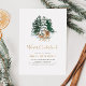 Celebre o primeiro aniversário do seu bebê com este convite de aniversário neutro em termos de gênero que inclui uma aquarela inverno ilustração temida de uma proa e de um veado em frente a uma floresta de neve.
