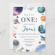 Primeira Viagem ao redor do Sun Aniversário Convidar Este convite temático do espaço em aquarela é perfeito para o grande dia do seu pequeno astronauta. Apresentando planetas, foguetes, um OVNI, e um doce astronauta, este convite constitui a palco de uma "Saída deste Mundo" primeira viagem ao redor do sol. Personalize com o nome do seu filho, os detalhes da festa e as informações de RSVP para um evento verdadeiramente estelar