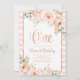 Convites Primeiro Aniversário do Blush Pink Floral Rosa Dou