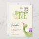 Convide convidados para o seu grande dia com nossos encantadores convites de Dino Primeiro Aniversário! Esta design deliciosa mostra um adorável dinossauro bebê eclodindo de um ovo, aliado a um dino alegre vestindo um chapéu de festa e segurando um presente. As palavras "Our Little Dino is Turning ONE" são exibidas com brincadeira, com um grande "ONE" verde como peça central. Abaixo, um roteiro elegante anuncia a celebração em uma fonte caprichosa. Contra um fundo de creme suave, este convite captura a alegria de uma celebração pré-histórica!