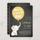 Convite de festas de primeiro aniversario Elefante | Primeiro Aniversário do Elefante | amarelo e cinzas