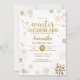Flocos de neve prateados Dourados Primeiro Aniversário Flocos de neve de inverno Primeiro Aniversário Convide Perfeito para acolher o inverno e celebrar o primeiro aniversario de inverno na Terra Ocidental, convite de aniversário de Natal,