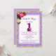 Este convite é, sem dúvida, um guardião! Projetado com um padrão de brilho falso em tons de roxo, lavanda e ouro; e acentuado com rosas. Estes cartões impressionam os seus convidados. Celebre seu primeiro aniversário em estilo!