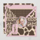 Os impressões do safari, girafa, zebra, e chita e um teste padrão de bolinhas, com os Tag do cupcake da novidade e do olhar 3D, arcos, aparam o cartão do convite do aniversário para um bebê de um ano.