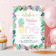 Este adorável convite apresenta flores tropicais pintadas à mão de aquarelas com falso confete de brilho dourado.